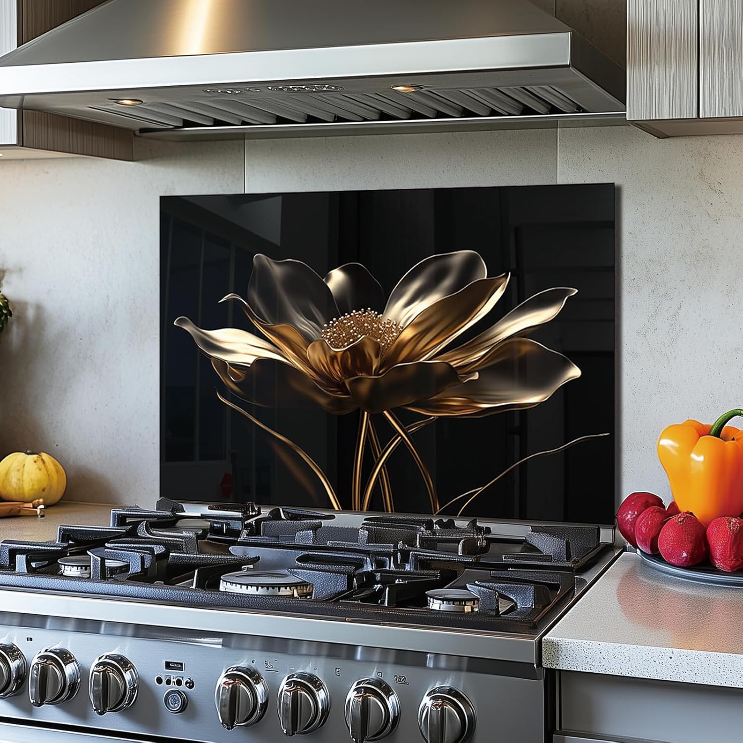 Tempered Glass Golden Lotus Tempered Glass Backsplash For Kitchen Behind Stove