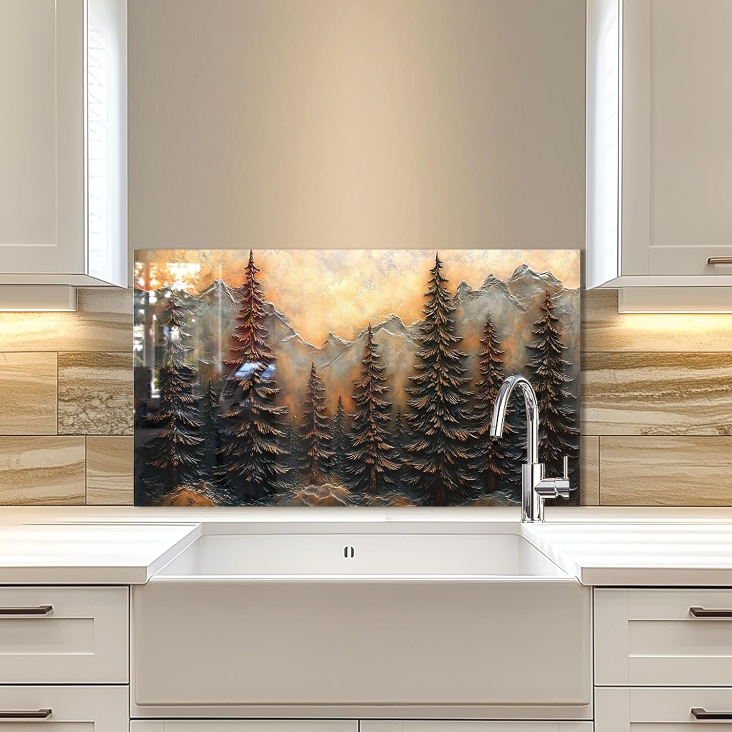 Tempered Glass 3D Pine Forest Kitchen Sink Cover Splash Guard