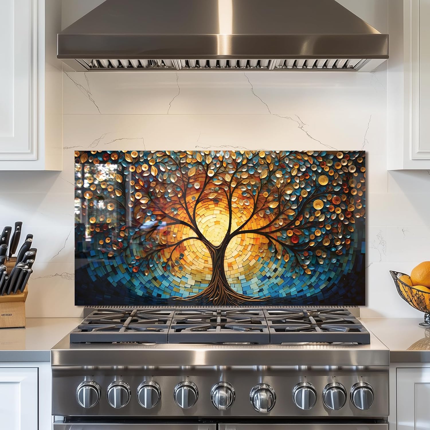 Tempered Glass Tree of Life Kitchen Sink Cover Splash Guard